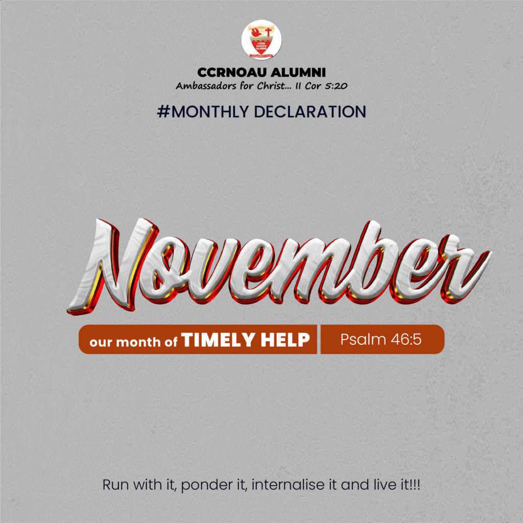 The CCRN OAU alumni family during her November prayer forum which took place on Saturday, 1st November, 2025, declared the new month as the month of Timely Help. The theme of the month was taken from Psalm 46:5.